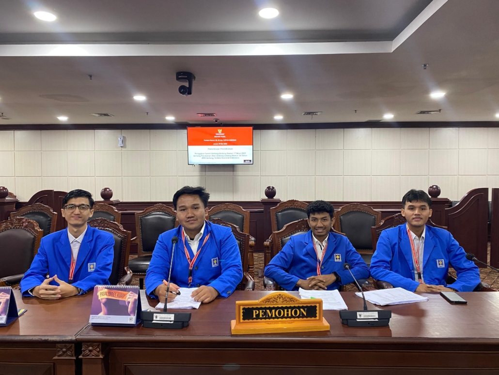 4 Mahasiswa Fakultas Hukum (FH) Universitas Islam Indonesia (UII) saat melakukan pemeriksaan pendahuluan atas permohonan uji formil UU TNI pada Jumat (9/5) (Sumber: law.uii.ac.id)