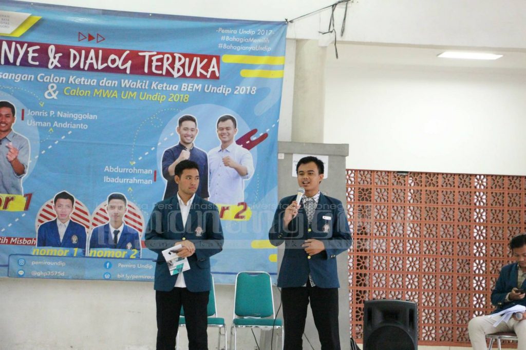 (Ibad): Kedekatan kita berdua, diharapkan bisa menyakinkan mahasiswa untuk memilih kami sebagai Ketua dan Wakil Ketua BEM 2018. Selain itu dari visi dan misi dari kami berdua kami tak hanya berfokus pada event saja, tetapi kami ingin mengubah paradigma mahasiswa. Jika organisasi mahasiswa tak hanya sebagai event organizer tetapi sebagai wadah pergerakan. Dari kami berharap BEM Undip dapat menghidupkan jiwa-jiwa pergerakan dan merangkul semua golongan.