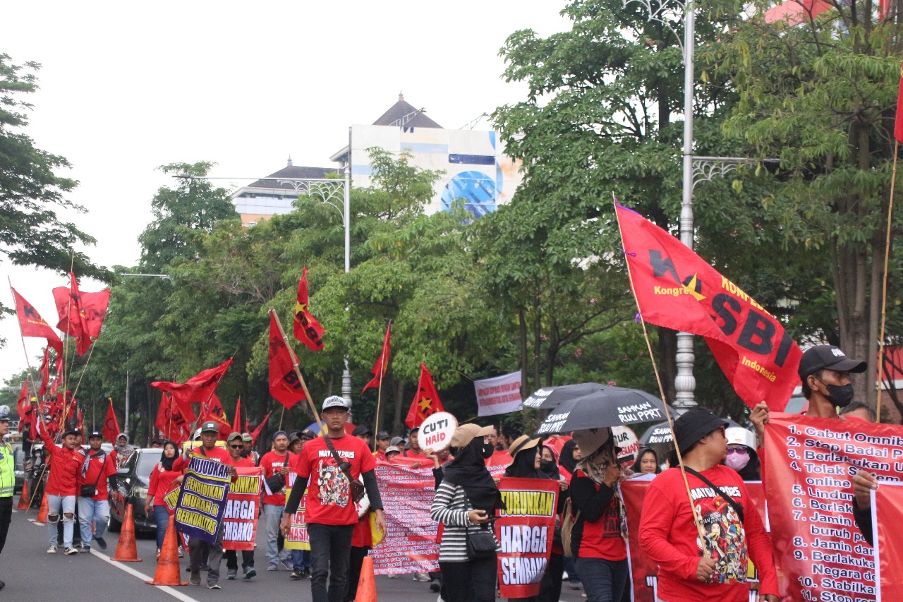 Kelompok buruh dari Kongres Aliansi Serikat Buruh Indonesia (KASBI) mendatangi Kantor Gubernur Jawa Tengah (Jateng) untuk memperingati Hari Buruh Sedunia pada Kamis (1/5) (Sumber: Manunggal)