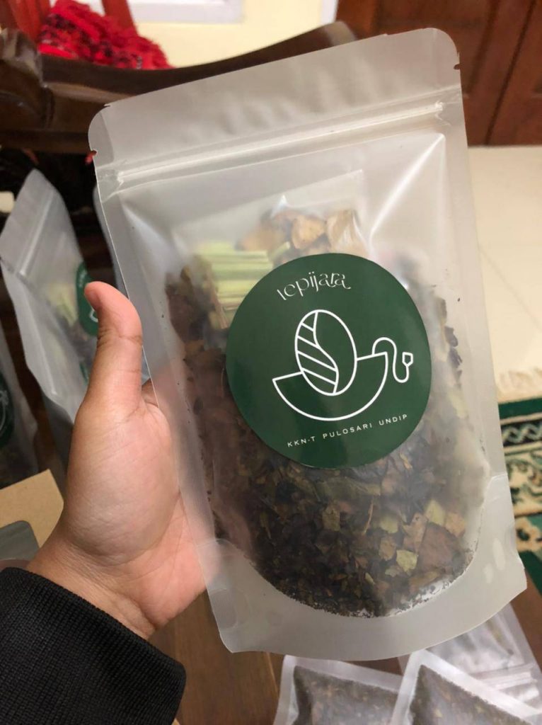 Produk teh dari daun kopi dengan bahan tambahan jahe dan sereh oleh mahasiswa tim KKN 2 Universitas Diponegoro. (Sumber: Dok. Pribadi) Citizen Journalism – Biji kopi merupakan hasil utama dari tanaman kopi yang menjadi perhatian dan prioritas dalam pengolahannya. Namun, pada kenyataannya semua bagian dari tanaman kopi dapat dimanfaatkan dengan baik. Di antaranya yaitu daun