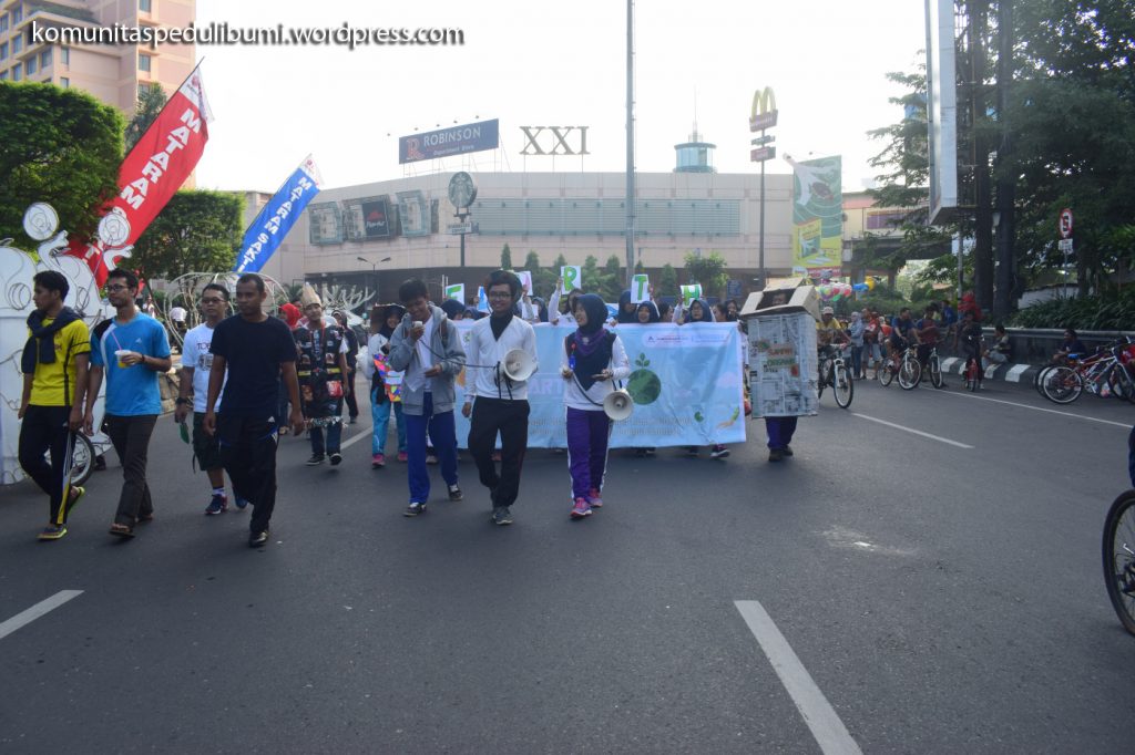 Acara yang dimulai sejak pukul 06.00 WIB tersebut diawali dengan long march keliling area Simpang Lima. Long march tersebut bertujuan untuk memberitahukan adanya peringatan hari bumi dan mengajak masyarakat untuk semakin mencintai lingkungan, salah satunya dengan cara mengambil sampah yang ada di area sekitar CFD.