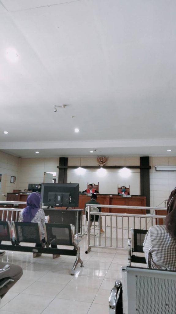 Suasana sidang dengan agenda pembacaan putusan kepada empat mahasiswa yang ditangkap saat melakukan aksi penolakan Omnibus Law Undang Undang Cipta Kerja 2020 silam, Selasa (8/6) (Foto: Nuha/Manunggal)