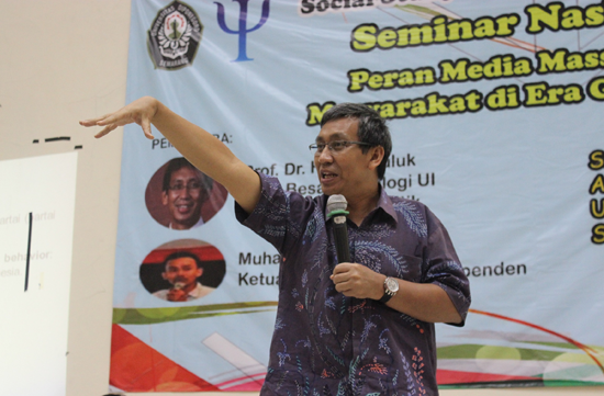 ManunggalCybernews — Guru Besar Psikologi Universitas Indonesia, Prof Dr Hamdi Muluk, menjadi pembicara materi pengaruh media massa terhadap voting behavior, dalam Seminar Nasional yang digelar Social Study Club di Aula Dekanat FakultasPsikologi Undip, Sabtu (11/10).