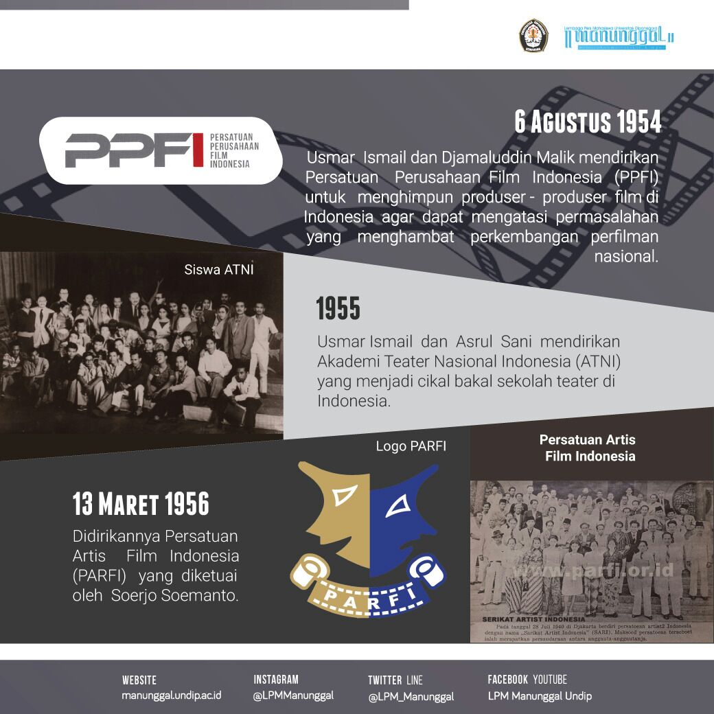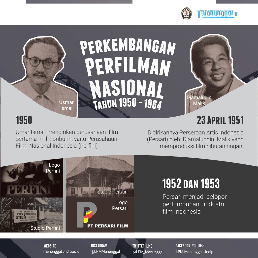 ManunggalCybernews— Perfilman di Indonesia mulai muncul pada tahun 1950. Usmar Ismail sebagai pendiri perusahaan film pertama milik pribumi, yaitu Perusahaan Film Nasional Indonesia (Perfini) berhasil memproduksi film perdananya yang berjudul Darah dan Doa (The Long March of Siliwangi). Film Darah dan Doa disematkan sebagai “Film Nasional Pertama” karena film tersebut mengangkat kisah perjuangan nasional yang belum pernah ada sebelumnya. Hari pertama pengambilan gambar film tersebut, yaitu pada 30 Maret dalam perkembangannya diperingati sebagai Hari Film Nasional.