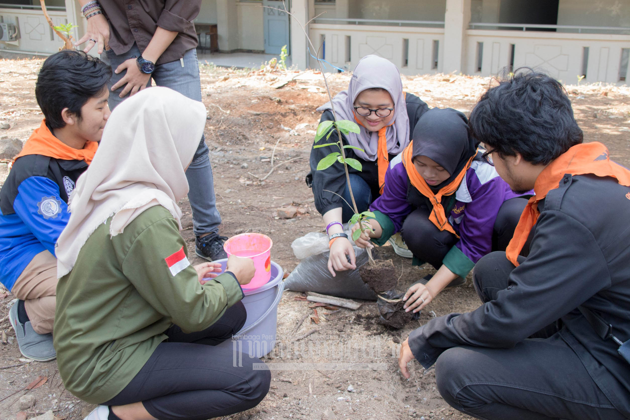 Perwakilan peserta HUT Haliester menanam pohon di halaman gedung Achintya Prasada, FSM pada Jum’at, (25/10).