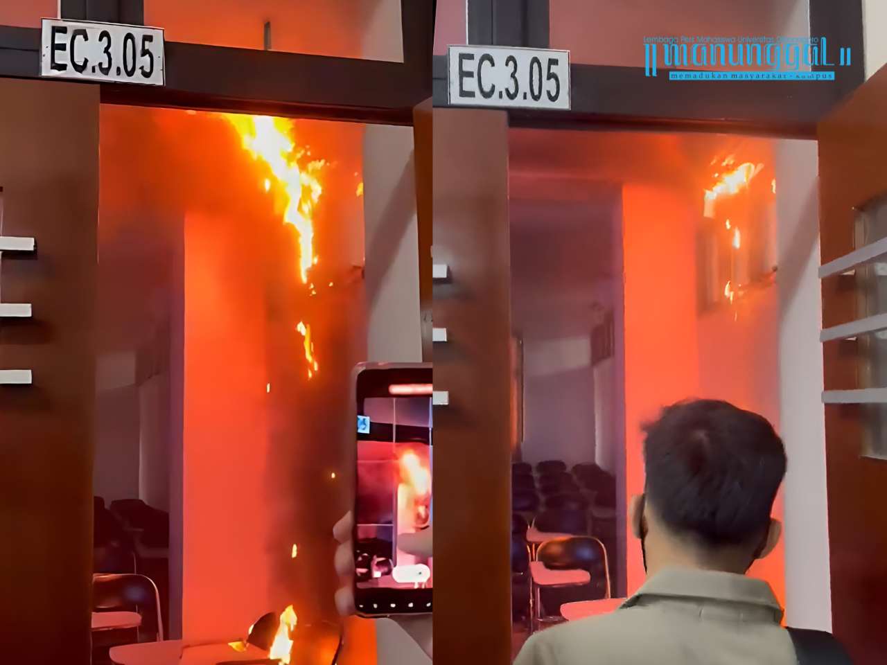 Insiden Kebakaran di Ruang EC 3.05 Gedung C Fakultas Ekonomika dan Bisnis (FEB) Universitas Diponegoro (Undip), Senin (26/2). (Sumber: Dok. Pribadi)