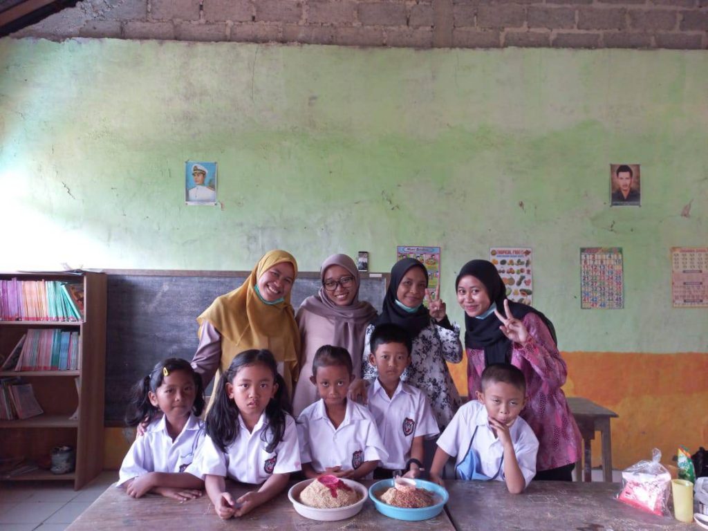 Potret mahasiswa program Kampus Mengajar bersama siswa SDN 2 Pasegeran. (Sumber: Dok. Pribadi)