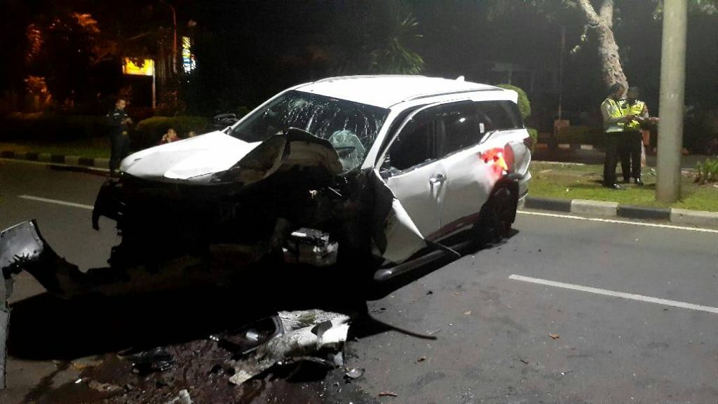Warta Utama— Sebuah mobil Fortuner mengalami kecelakan tunggal di depan Gedung Serba Guna Undip, Minggu (18/10) pukul 03.00 dini hari. Mobil menghantam pohon di bahu kiri jalan, kemudian terpental sehingga menutupi jalan akses kampus Undip, Tembalang.