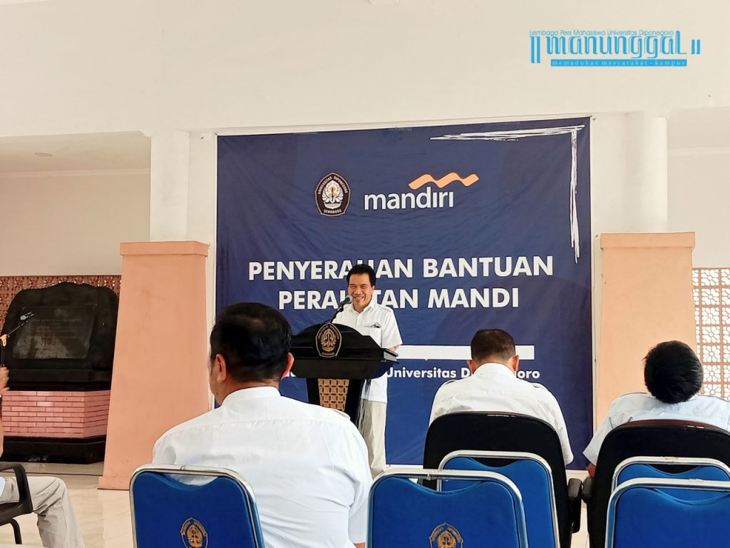 “Kebetulan ini programnya penyerahan alat mandi. Harapannya supaya teman-teman mahasiswa di Undip bisa tumbuh sehat, belajarnya juga bisa maksimal. Sehingga nanti insyaallah bisa menjadi orang sukses semuanya,” terang Alwiat Seva Setyadi, Manajer Bank Mandiri.