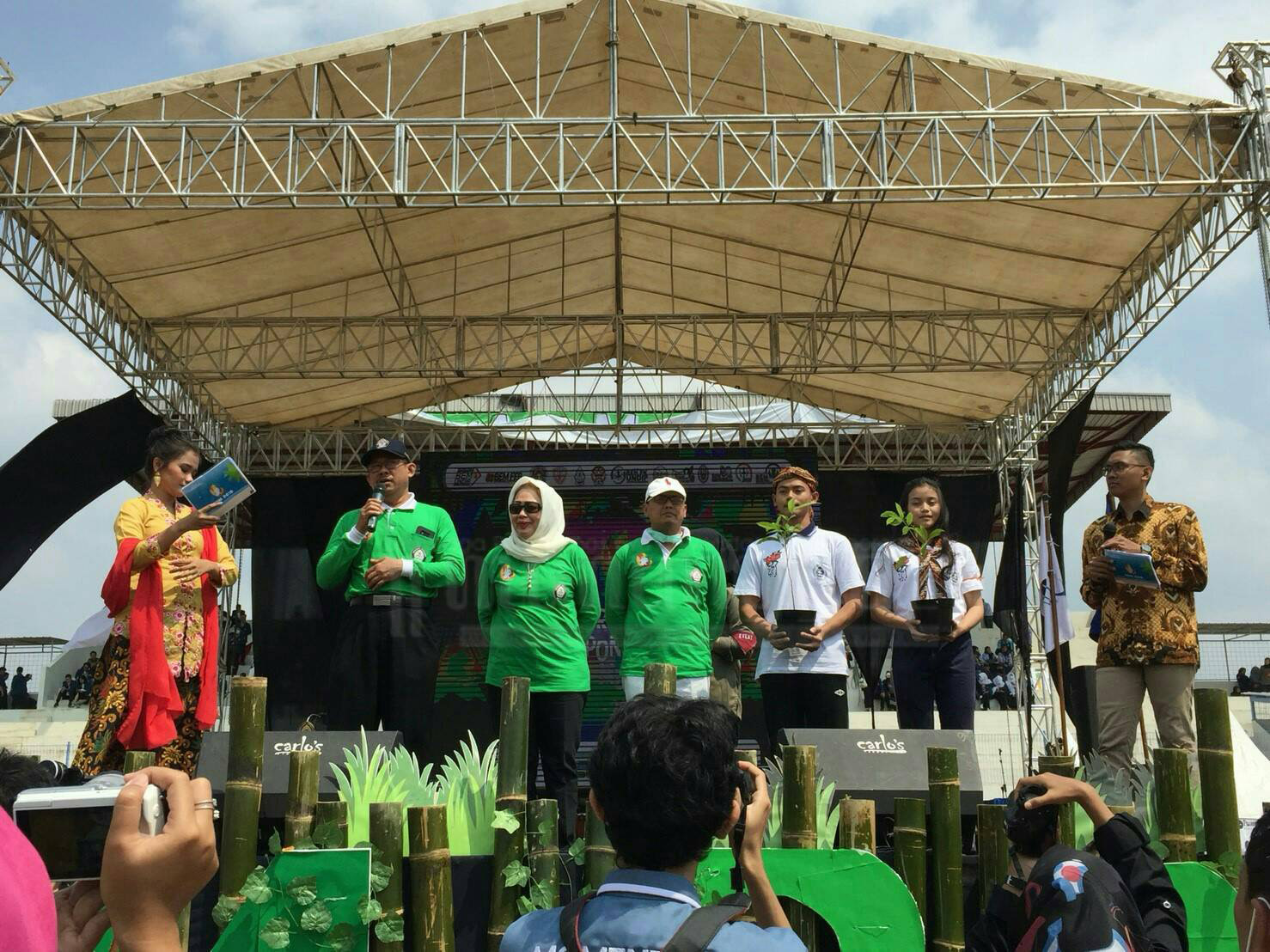 “Drama kolosalnya menggambarkan kondisi alam saat ini yang mulai rusak dengan dilakukannya berbagai pembangunan. Sehingga diharapkan melalui konsep green habit dapat dilakukan penghijauan kembali terhadap alam Indonesia. Salah satunya adalah dengan penanaman pohon,” ujar Jora Linca, salah satu penampil drama kolosal dari UKM Teater Dipo. (Erlin/Manunggal)