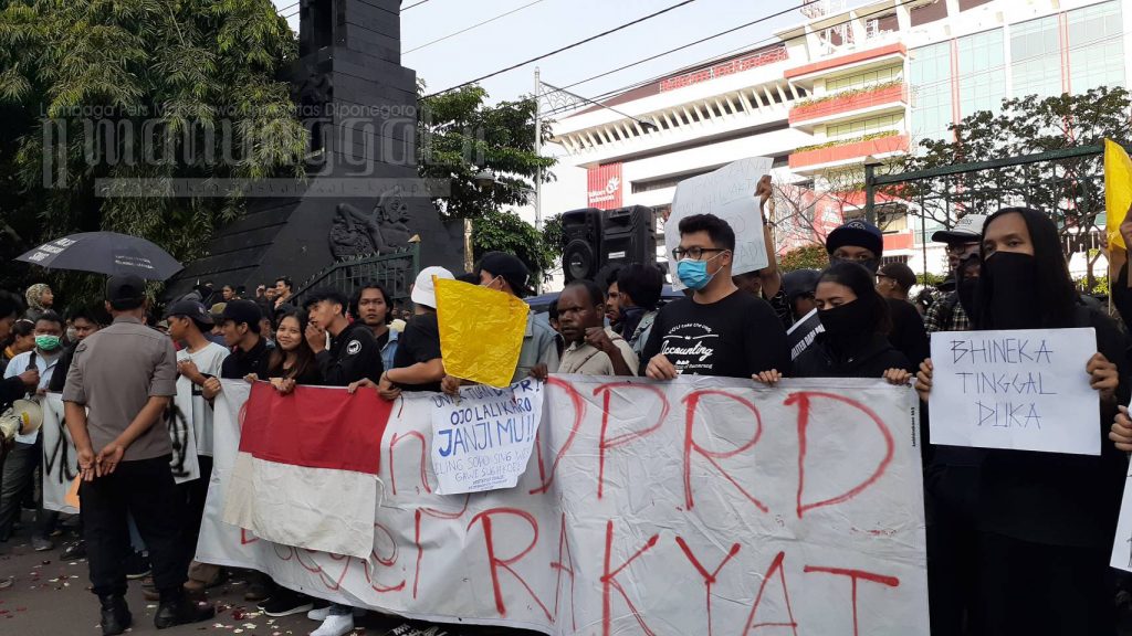 ManunggalCybernews– Aliansi Semarang Raya gelar aksi #SemarangMelawan di Gedung Gubernur dan Dewan Perwakilan Rakyat Daerah (DPRD) Jawa Tengah pada Senin (30/9). Aksi ini merupakan aksi lanjutan #SemarangMelawan yang telah dilaksanakan pada Selasa (24/9) lalu.