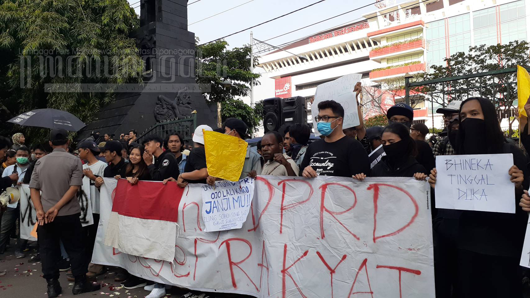 Masa aksi lanjutan #SemarangMelawan menambahkan tuntuan yang sebelumnya telah mereka ajukan.(Alfiansyah/Manunggal)