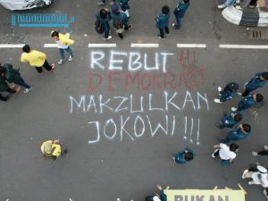 Semarangan – Aliansi mahasiswa perguruan tinggi di Semarang mengadakan seruan aksi konsolidasi “Jokowi Polah, Demokrasi Bubrah” di depan halaman Kantor Gubernur Jawa Tengah guna memberi tuntutan demokrasi yang sudah hilang arah, Senin (12/2).