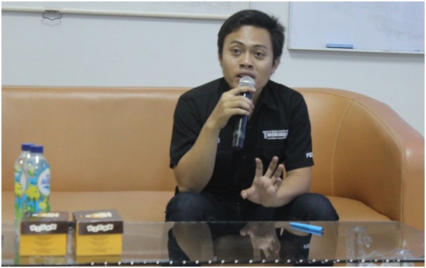 ManunggalCybernews—Pemimpin Perusahaan Lembaga Pers Mahasiswa (LPM) Manunggal Universitas Diponegoro, Fikri Maulana, menyampaikan materi fotografi pada Workshop Jurnalistik yang diselenggarakan Badan Eksekutif Mahasiswa Fakultas Kedokteran (BEM FK) Universitas Diponegoro di Gedung C Ruang 11, Sabtu (26/4).