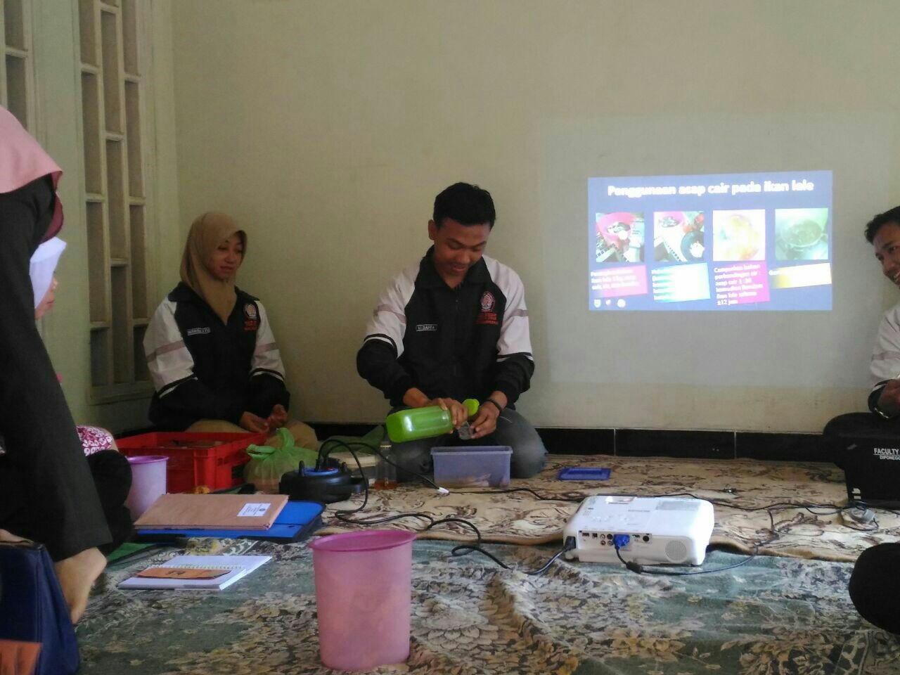 Dalam kegiatan ini peserta dipaparkan dan dipraktekkan konsep cara pembuatan, pemanfaatan, dan kelebihan asap cair dibandingkan dengan pengasapan secara konvensional. Asap cair mempunyai kelebihan diantaranya sebagai bahan pengawet alami, praktis dalam pengaplikasiannya, hemat, higienis, dan bisa diaplikasikan ke semua jenis daging. Hasil dari olahan asap cair ini mempunyai cita rasa seperti ikan asap pada umumnya. Ikan yang digunakan sebagai contoh yaitu ikan lele. Jadi ikan lele yang dihidangkan di hadapan ibu-ibu bukanlah lele goreng biasa, melainkan ikan lele asap. Selain olahan ikan dengan asap cair juga dipaparkan cara pembuatan nugget berbahan dasar ikan lele.