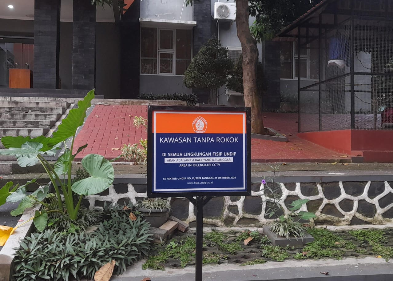 Salah satu sudut kampus FISIP Undip yang dipasangi papan Kawasan Tanpa Rokok. (Sumber: Nurkhisbah Diana).