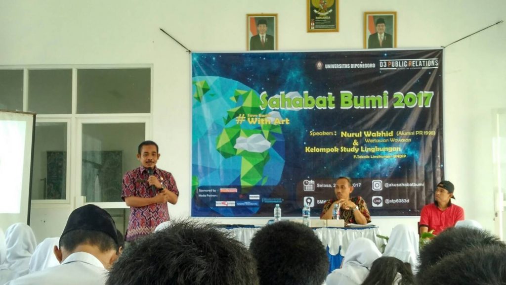 Kegiatan ini menghadirkan dua pembicara yaitu Nurul Wakkhid, alumni program studi Hubungan Masyarakat dan wartawan di salah satu perusahaan media cetak di Semarang, dan perwakilan dari Kelompok Studi Lingkungan (KSL) Undip.