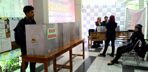 Pemilih menggunakan hak suaranya pada pemilihan raya di Tempat Pemungutan Suara (TPS) Fakultas Psikologi Undip, Kamis (4/12). (Kalista/Manunggal)