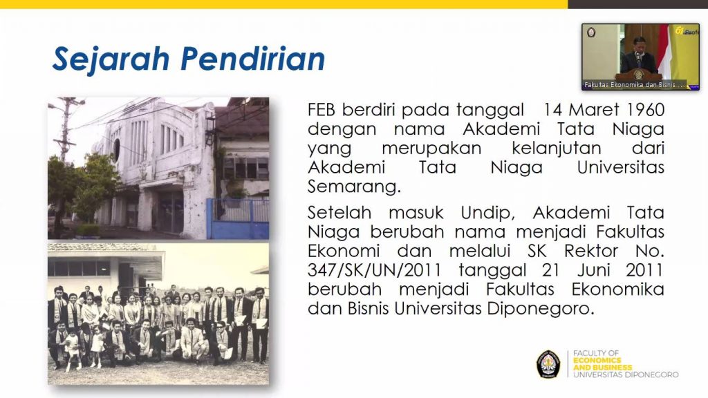 Fakultas Ekonomika dan Bisnis (FEB) Universitas Diponegoro (Undip) mengadakan Rapat Senat Terbuka dan Orasi Ilmiah dalam rangka Dies Natalis yang ke-61 pada Senin (15/03), pukul 14.00 WIB. Webinar bertajuk “Business Models and Business Model Innovation in Relation to Digitization Sustainability and COVID-19” tersebut, diadakan semi-offline bertempat di Hall Gedung Kewirausahaan dengan peserta terbatas dan menggunakan kanal Zoom Cloud Meetings.