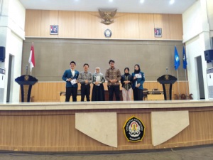 Foto Bersama Kedua Paslon Calon Ketua dan Wakil Ketua BEM Undip 2025 pada Debat Akbar Pemira Undip 2024 di Gedung Prof. Soedarto, Sabtu (14/12) (Sumber: Manunggal