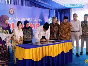 Rektor Undip menandatangani peresmian Muladi Dome, Jumat (5/4) (Sumber: undip.ac.id)