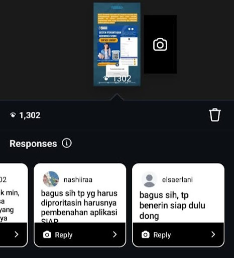 Reaksi Mahasiswa pada Instagram Story @lpmmanunggal, Senin (2/2) (Sumber: Unggahan Akun Instagram @lpmmanunggal)