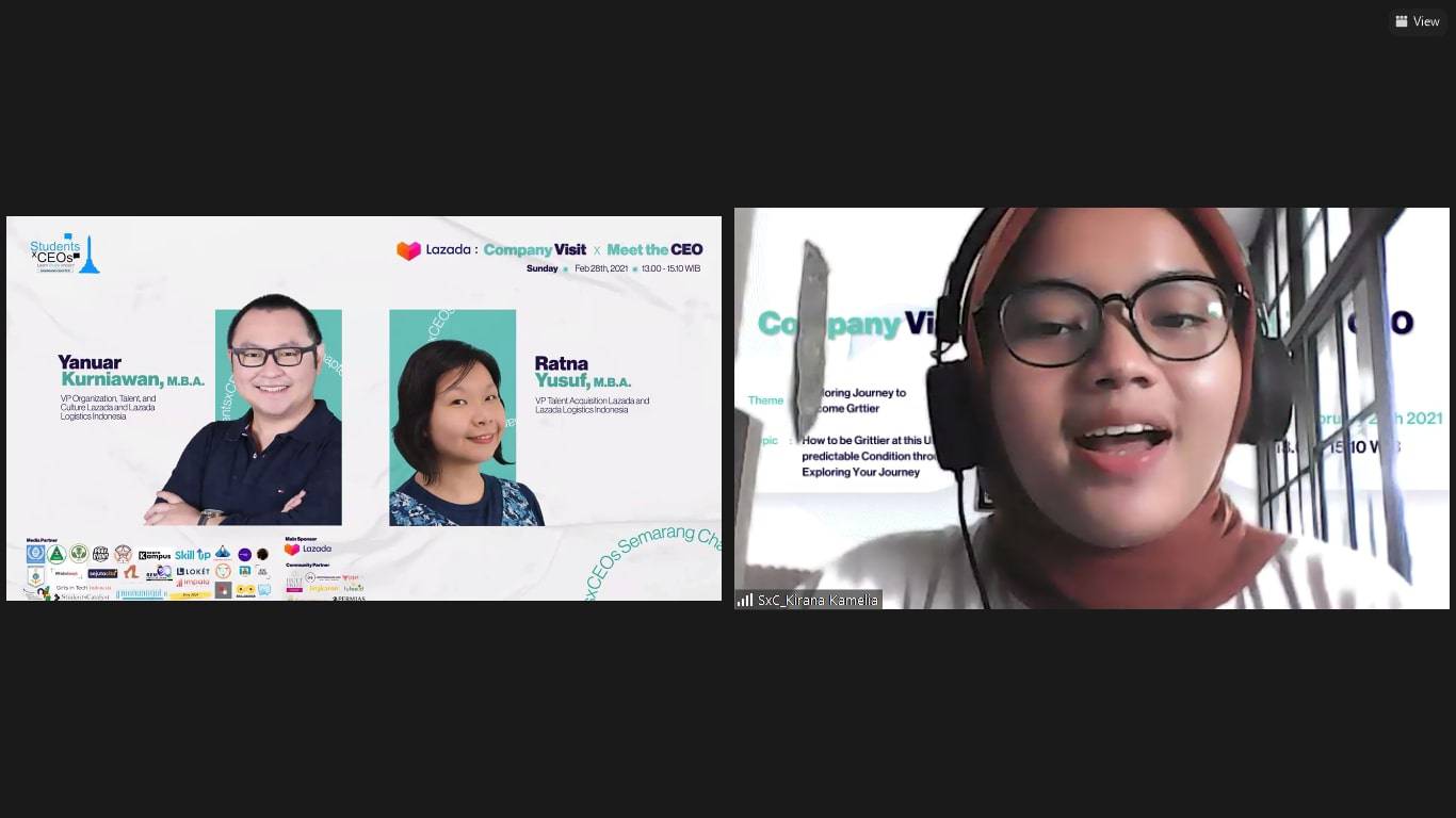 Warta Utama – Dalam rangka kunjungan perusahaan (company visit) sevara daring atau virtual, StudentsxCEOs Semarang mengadakan Company Visit x Meet the CEO bertajuk “How to be Grittier at this Unpredictable Condition through Exploring Your Journey” pada Minggu (28/02) melalui Zoom Cloud Meetings. SxC atau StudentsxCEOs sendiri merupakan organisasi bagi pelajar dan mahasiswa yang bertujuan mencetak generasi muda sebagai pemimpin perusahaan maupun wirausaha yang berkarakter.
