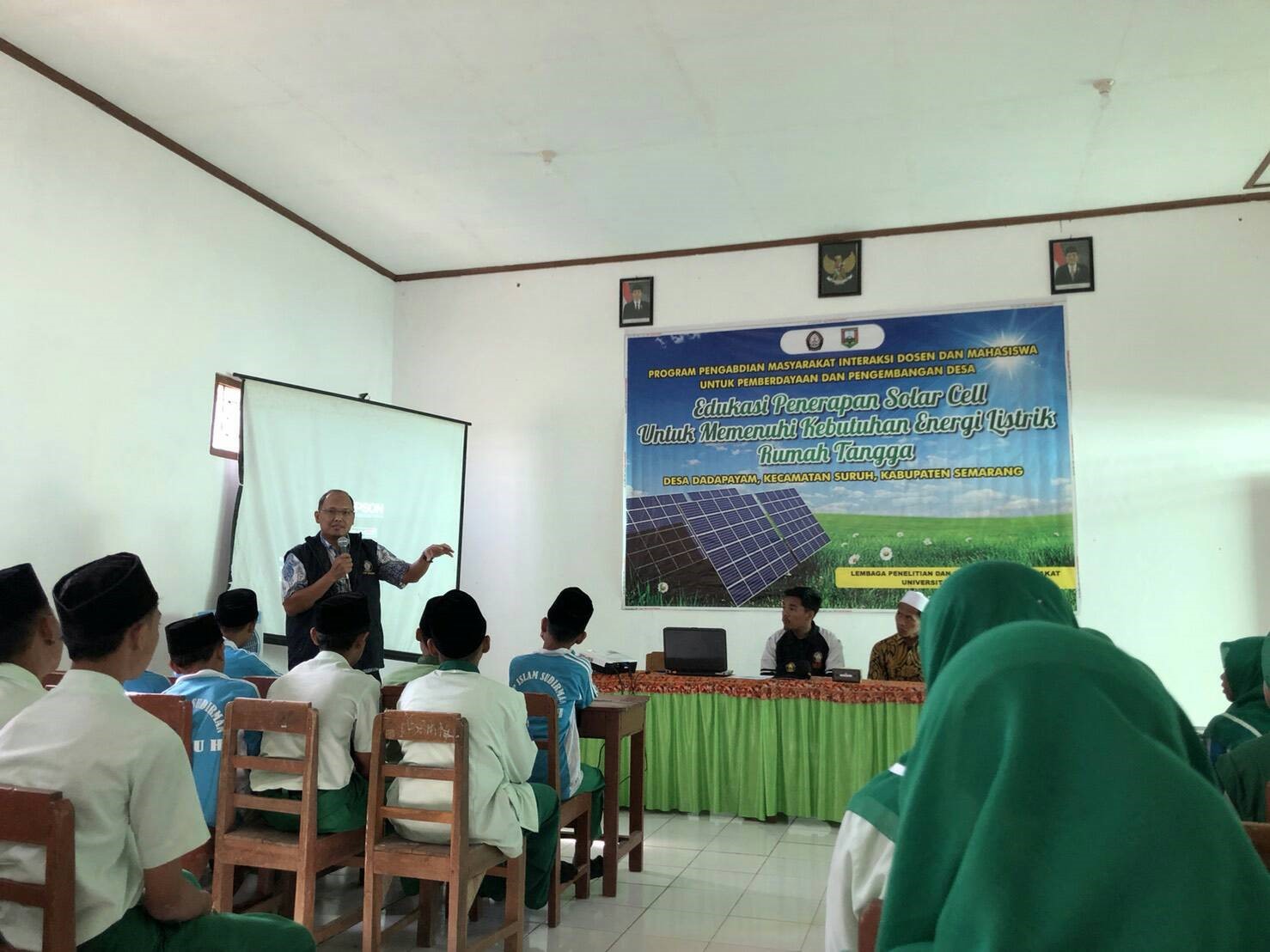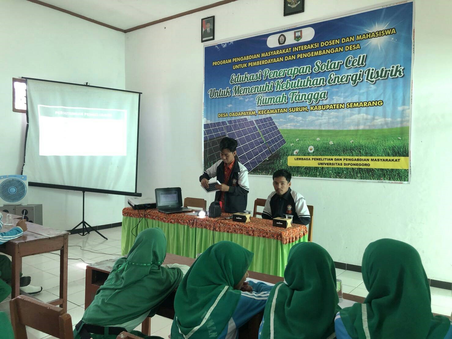 Semarang– Masyarakat Desa Dadapayam masih awam dengan pengetahuan pemanfaatan energi terbaru seperti energi cahaya matahari yang dapat dimanfaatkan menjadi energi listrik dengan menerapkan teknologi solar cell, Selasa (12/8). Program ini dilakukan oleh salah satu mahasiswa KKN Undip Desa Dadapayam, Muhammad Fajrur Rochmat jurusan Teknik Mesin Undip. Sasaran program ini adalah Siswa SMP Islam Sudirman Desa Dadapayam sebagai upaya meningkatkan pengetahuan tentang menerapkan teknologi solar cell di lingkungan Desa Dadapayam. Maka dari itu perlu adanya edukasi tentang penerapan solar cell untuk memenuhi kebutuhan energi listrik rumah tangga.