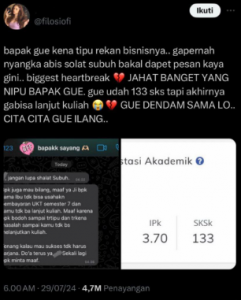 Unggahan Puji di media sosial X pada Senin, (29/7) (Sumber: Unggahan akun X @filosiofi)