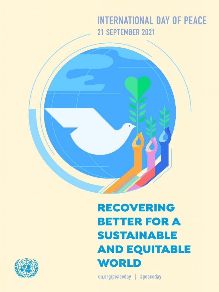 Peringatan Hari Perdamaian Internasional memiliki tema berbeda pada setiap tahun yang disesuaikan dengan kondisi masyarakat dunia. Pada tahun ini berkaitan dengan masalah pandemi secara global, tema yang diusung oleh PBB adalah “Memulihkan dengan Lebih Baik untuk Dunia yang Adil dan Berkelanjutan”. Pandemi telah memukul masyarakat kurang mampu dan terpinggirkan, terlebih bagi mereka yang hidup dalam wilayah konflik sehingga mengalami kesulitan akses ke pelayanan kesehatan. Gencatan senjata perlu dilakukan agar mereka dapat kemudahan mengakses vaksin serta perawatan lainnya.