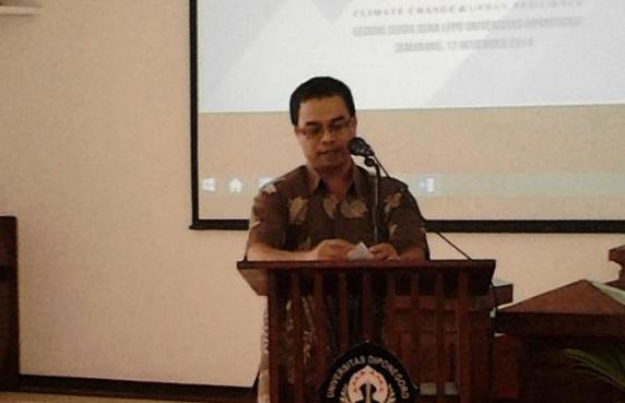 Ketua Jurusan Teknik Planologi, Asnawi Manaf, memberi sambutan dalam Seminar Nasional Diponegoro City Action (Dipocition) di Gedung LPPU Undip, Rabu (12/11). (Dok. Istimewa)