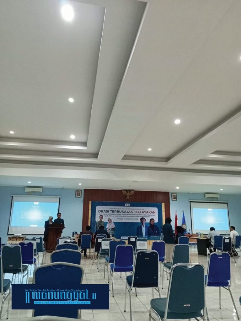 Warta Utama – Orasi Terbuka dan Uji Kelayakan Cakabem-Cawakabem dan Majelis Wali Amanat (MWA) Universitas Diponegoro 2023 pada Minggu (4/12) di Auditorium FPIK molor dari rencana awal. Agenda registrasi pukul 08.00 WIB dan pembukaan acara pukul 09.00 WIB rupanya baru dimulai satu seperempat jam kemudian.